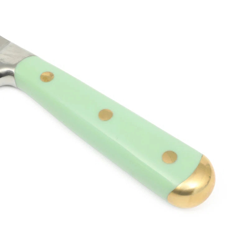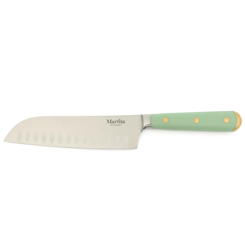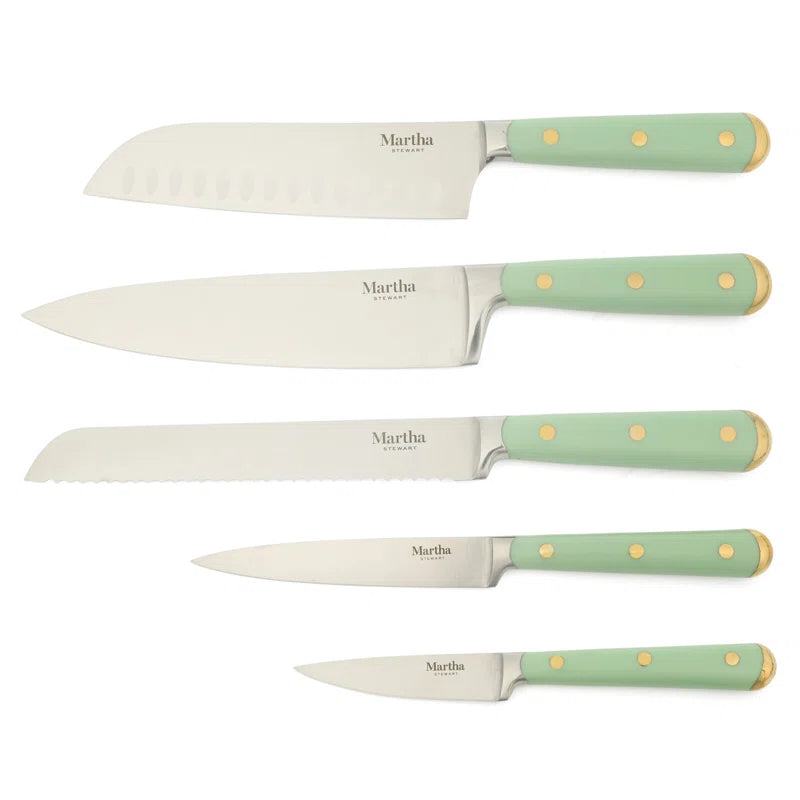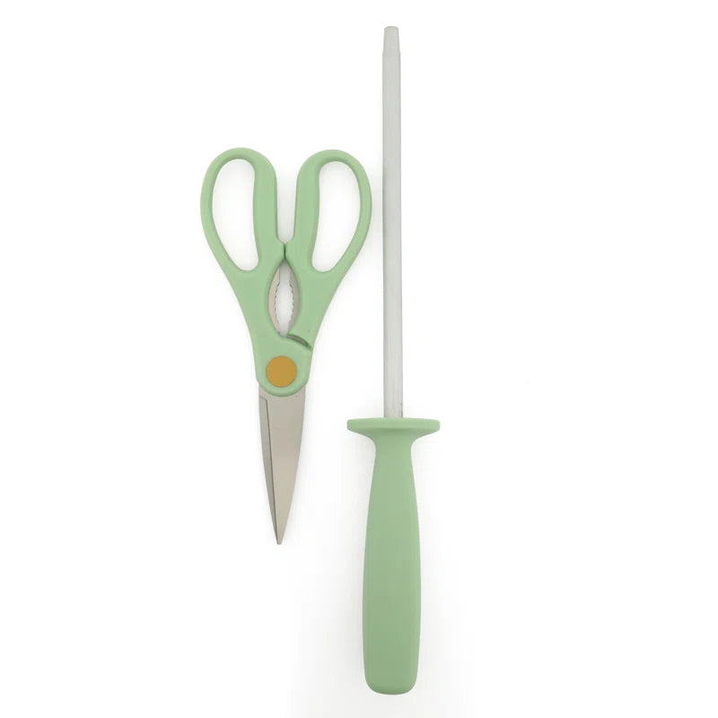 16 Piece Lockton High Carbob Stainless Steel Cutlery Kitchen Knife Block Set W/ ABS Tripe Riveted Forged Handle Acacia Wood Block - Sage Green W/ Gold