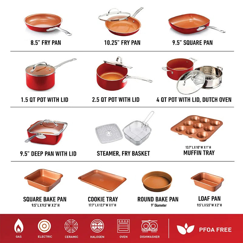 20 Piece Nonstick Cookware and Bakeware Set, Stay Cool Handles, Oven & Dishwasher Safe