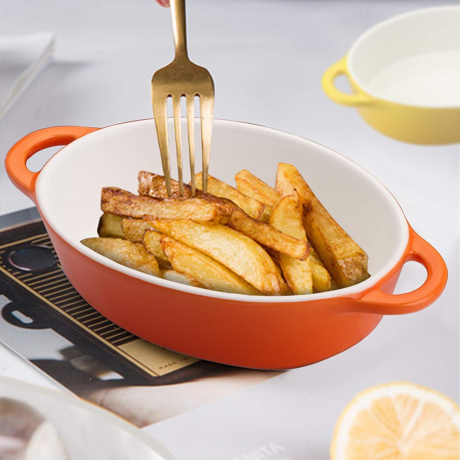 Featuring special oval shape with bright assorted coloring and smooth shiny finish, these ramekins look fantastic enough to make you have a wonderful cooking process and show off your creations