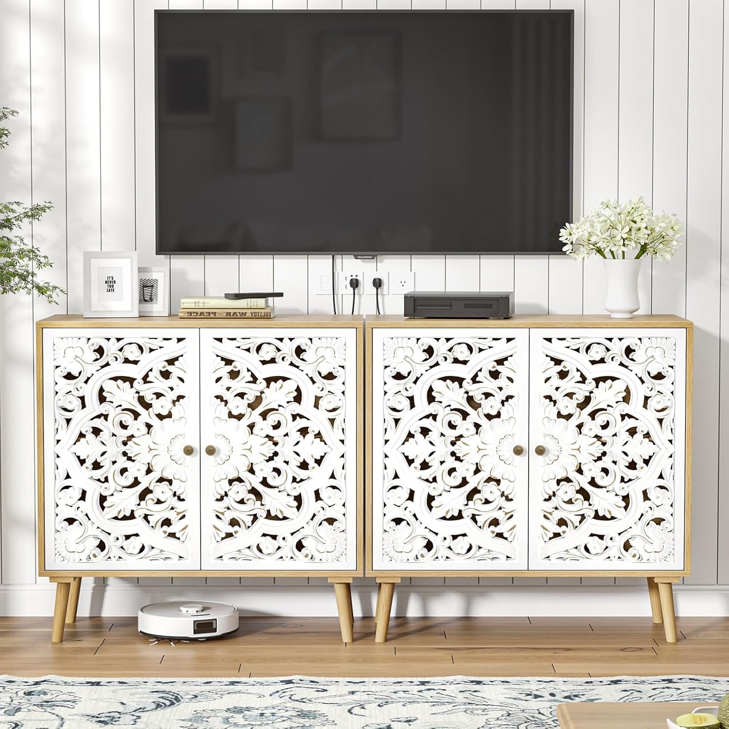 Adorable Vintage Look: The buffet cabinet features exquisite hollow carving craftsmanship. The wood finish gives it a retro look that... Read more