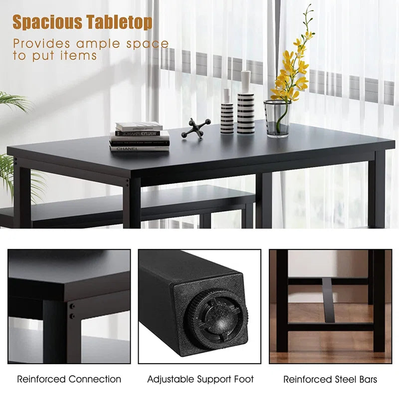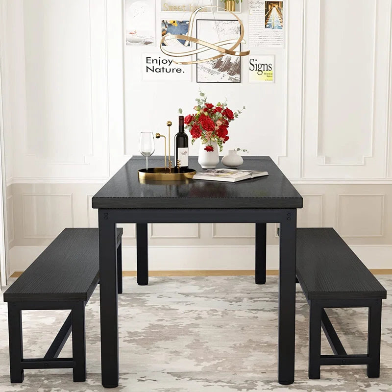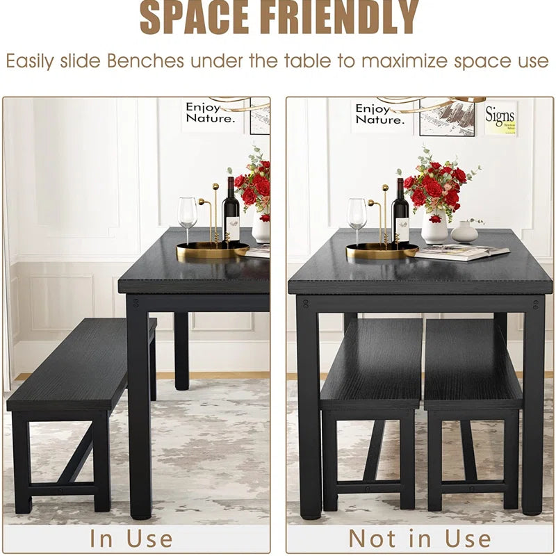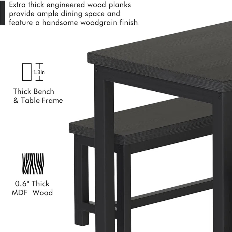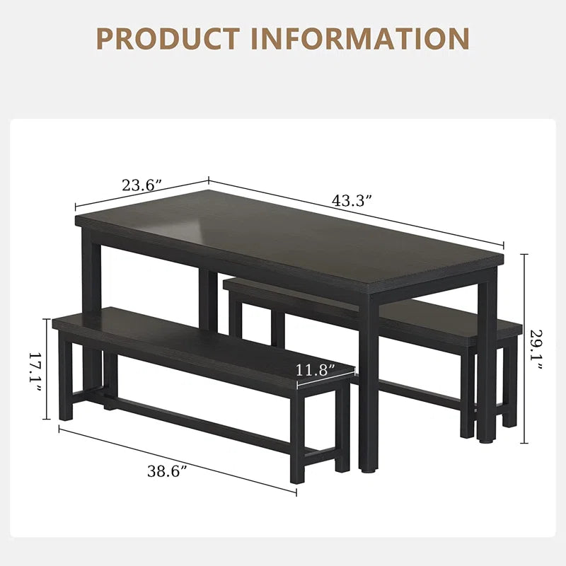 Efrat 3 Piece Dining Set, Kitchen Table with Benches