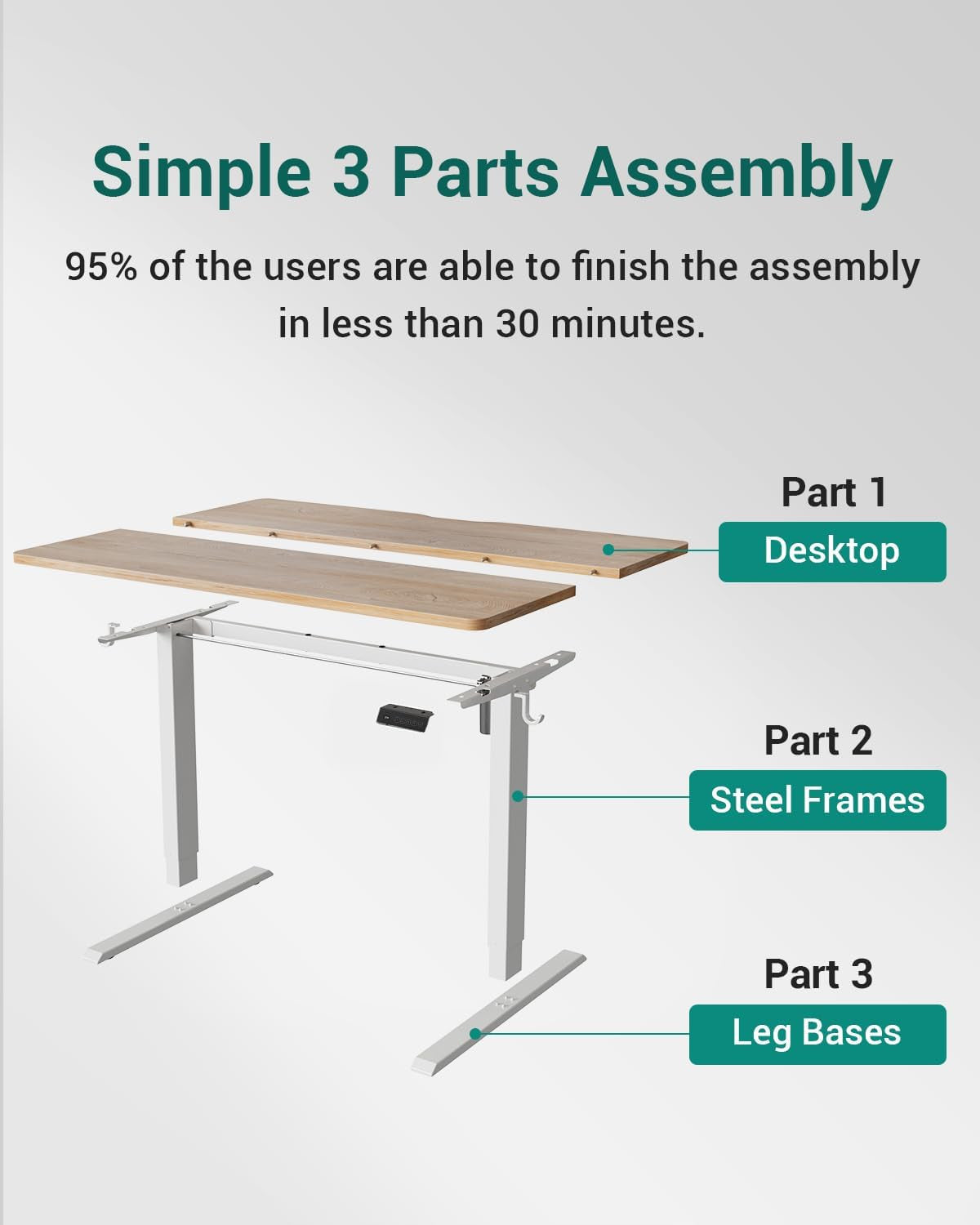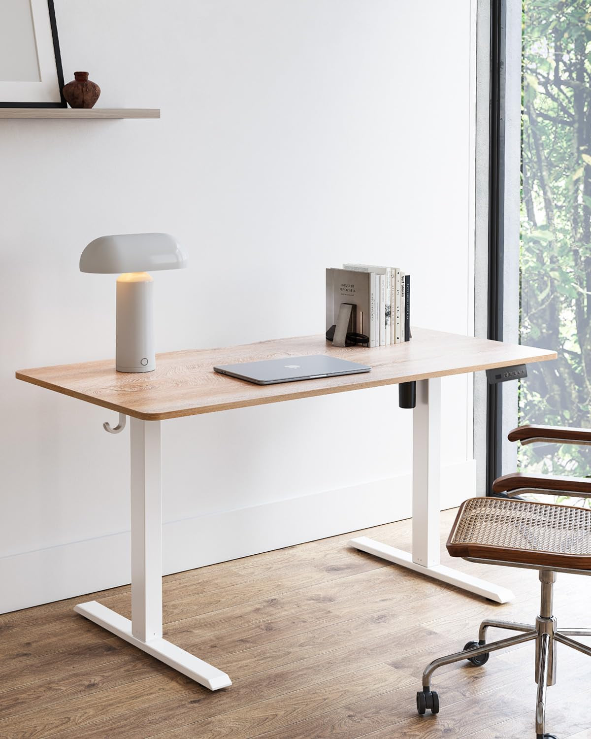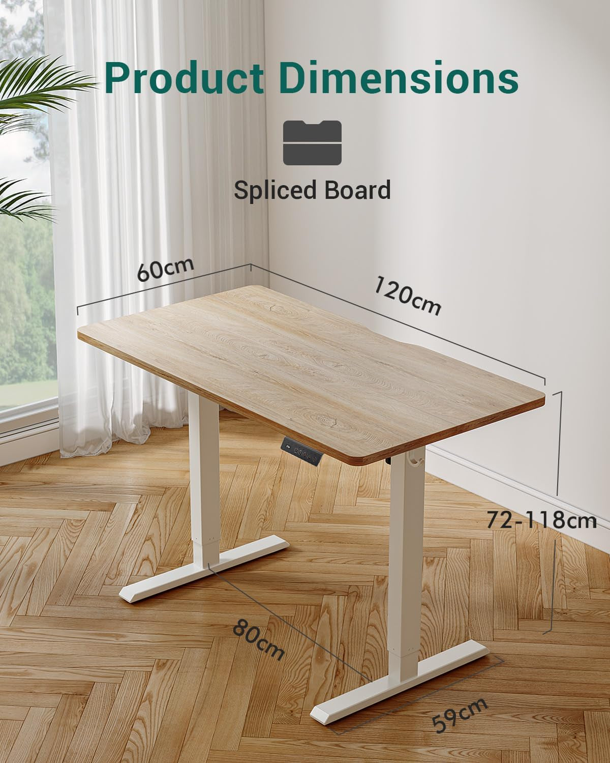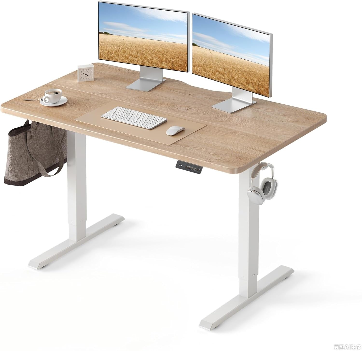 Electric Standing Desk, 47"X24" Height Adjustable Desk, Sit Stand up Desk with 4 Memory Buttons, Computer Workstation with Splice Board, Maple Wood