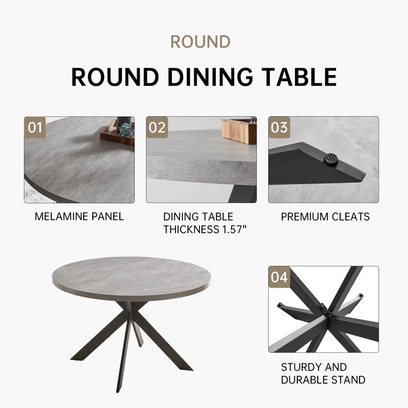 Garrell 46‘’ round Dining Table, Mid-Century round Kitchen Table for 4 Person, Modern Leisure Coffee Table
