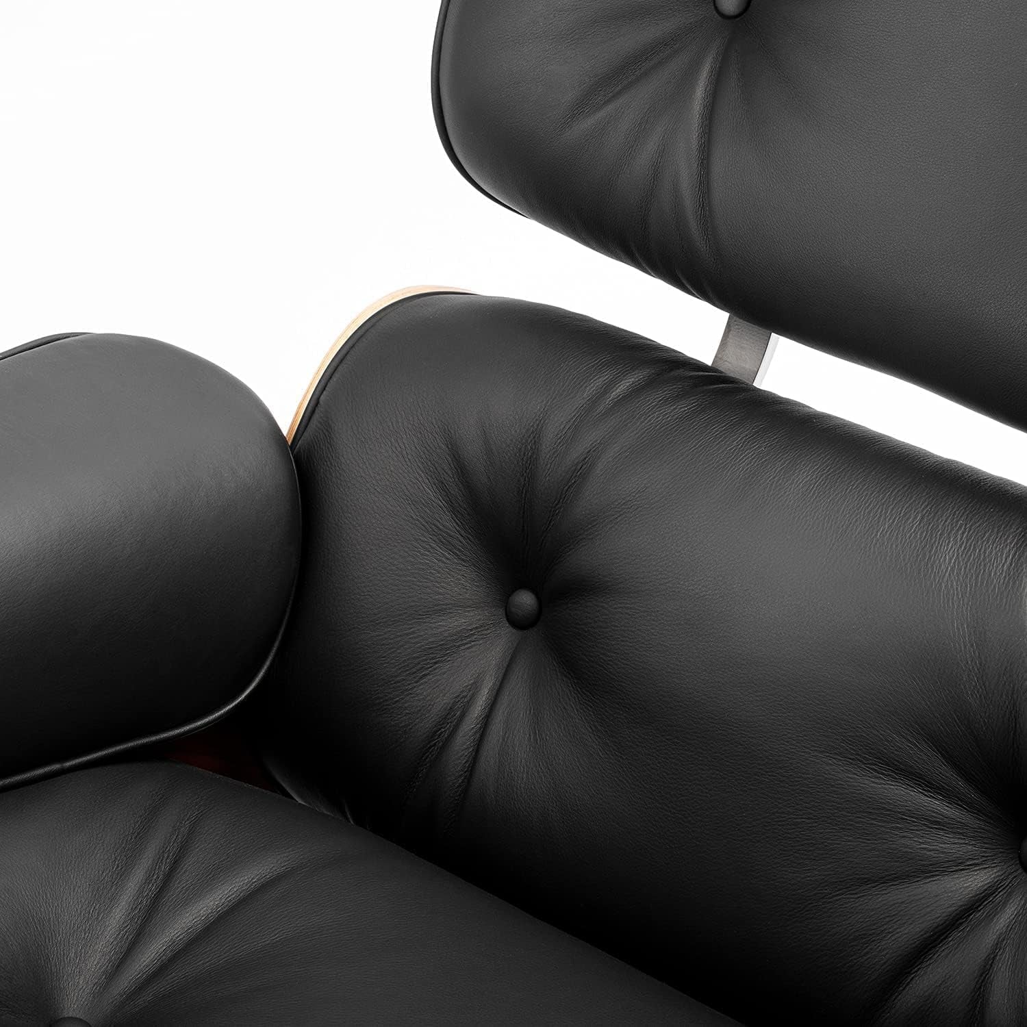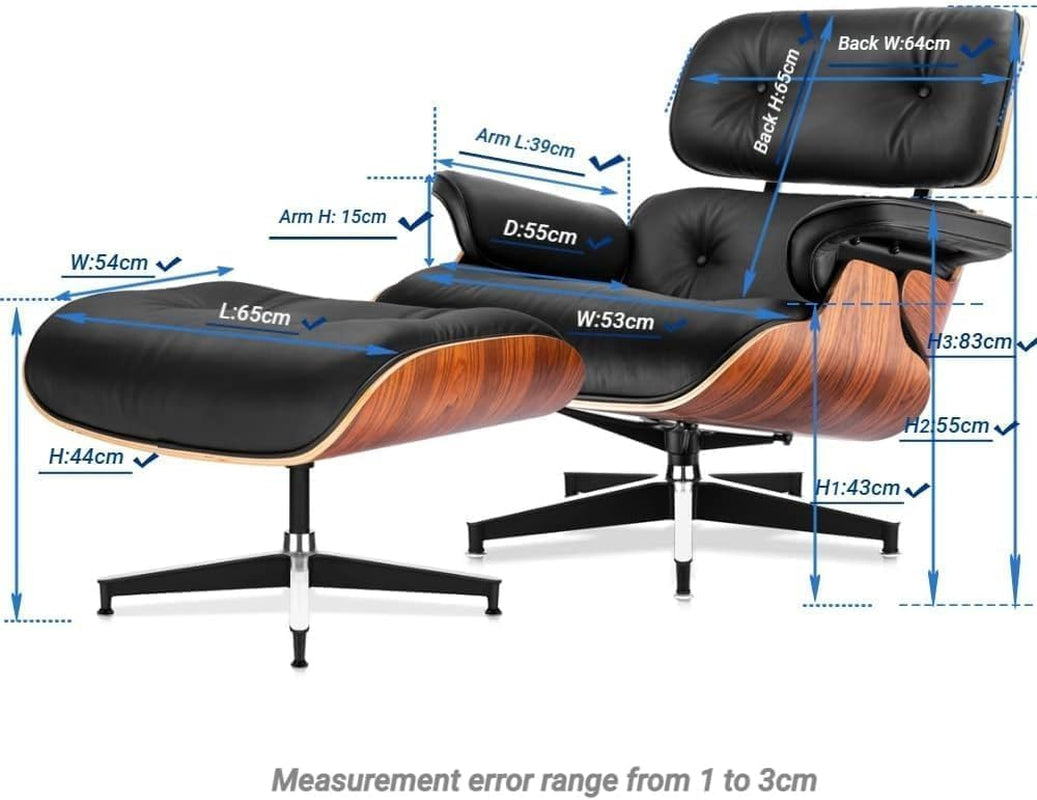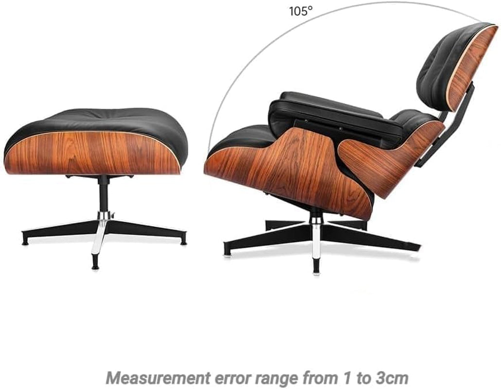 Genuine Leather Chaise Lounge Chair and Ottoman, Mid Century Modern Lounge Chair with Footstool for Living Room or Bedroom, Fixed Tilt Angle of 105° Backrest, Chair Swivelable with Durable Structure