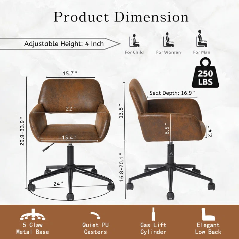 Hurrem 360 Degree Swivel Task Chair with Ergonomic Design, Height Adjustable for Bedroom, Office