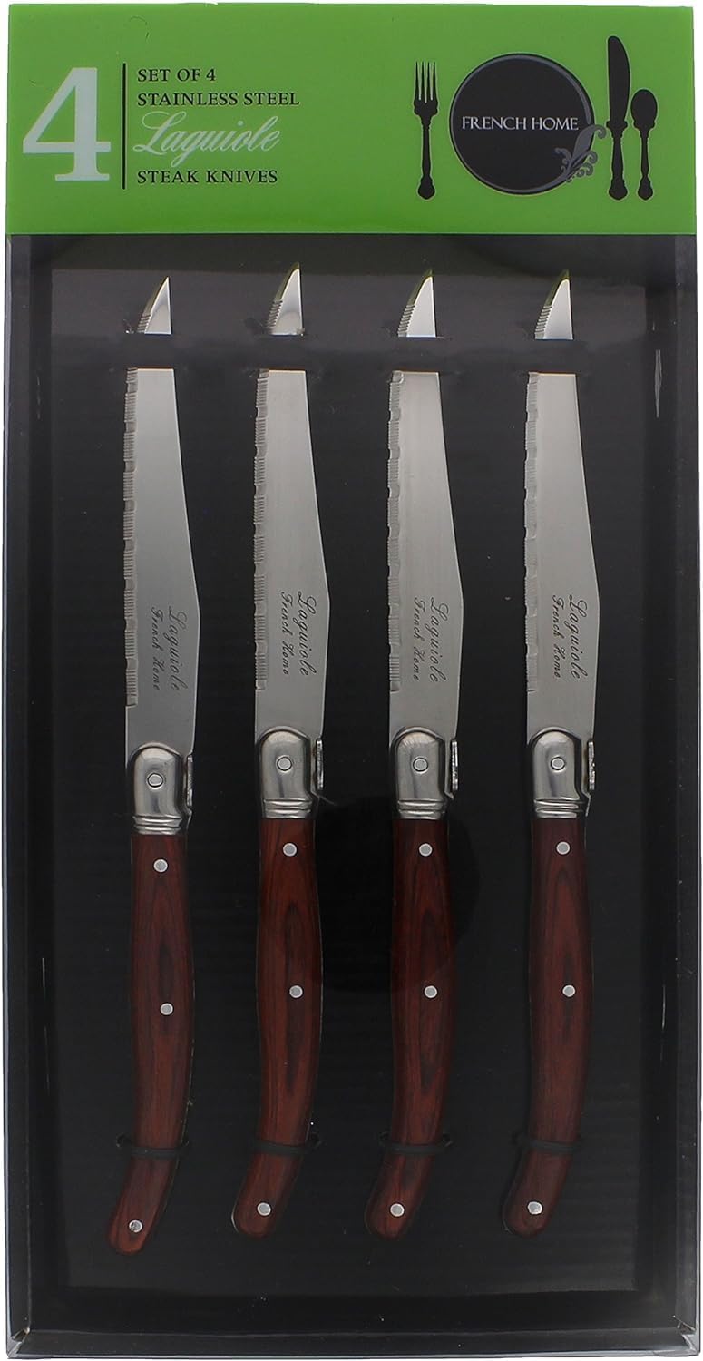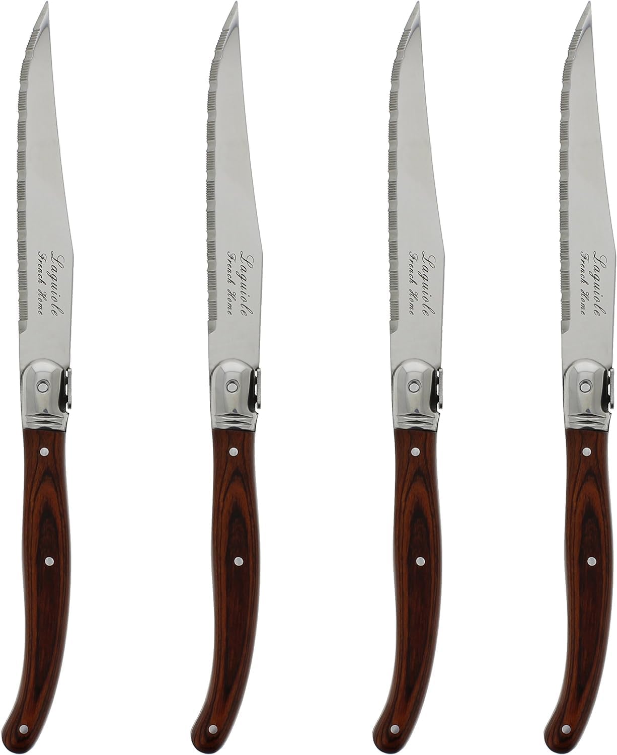 Laguiole 4-Piece Steak Knives (Pakkawood) - Stainless Steel Knives – Smooth Cut Serrated Knife Blade – Dishwasher Safe Steak Knife Set – Luxurious Kitchen Knife Set for Parties