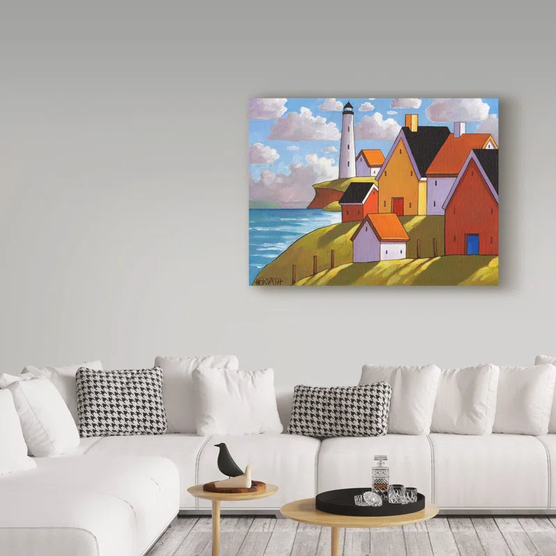 'Lighthouse Cottage Hillside View' Acrylic Painting Print on Wrapped Canvas