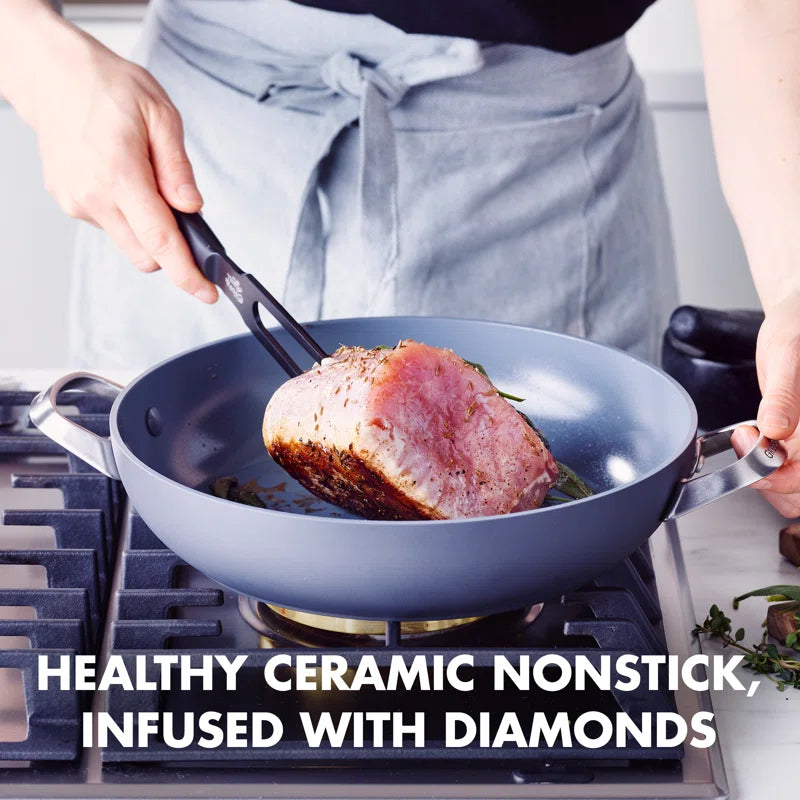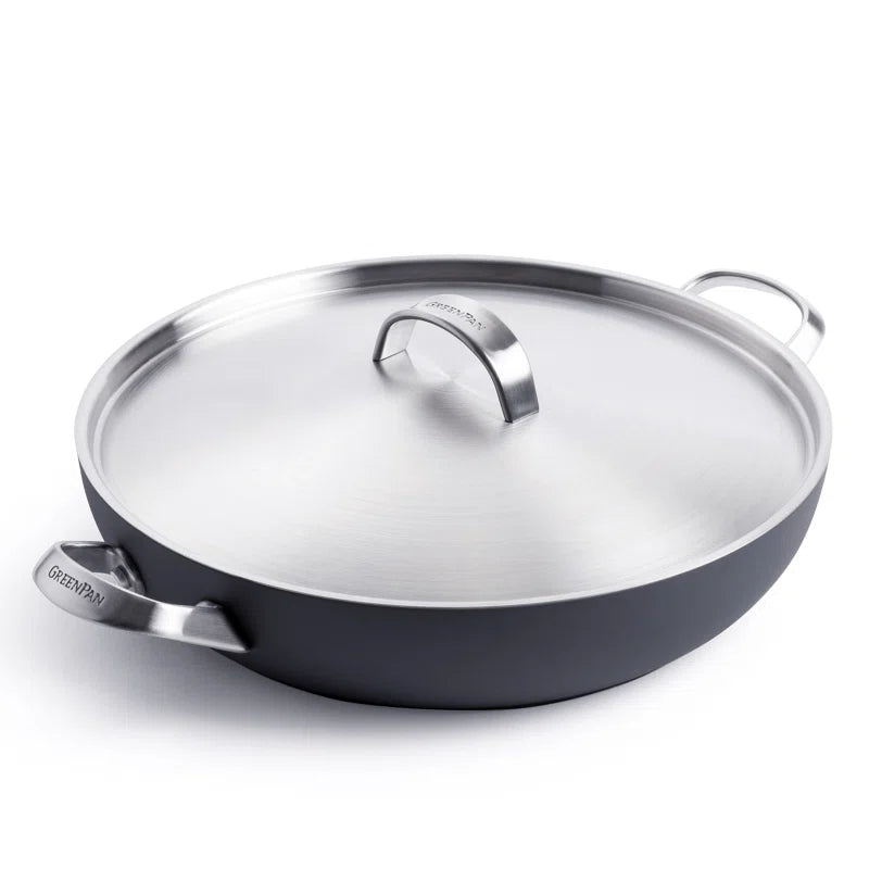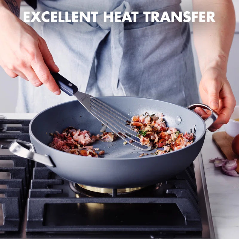 Paris Pro Hard Anodized Healthy Ceramic Nonstick, 11" Everyday Frying Pan Skillet with 2 Handles and Stainless Steel Lid, Pfas-Free, Dishwasher Safe, Grey
