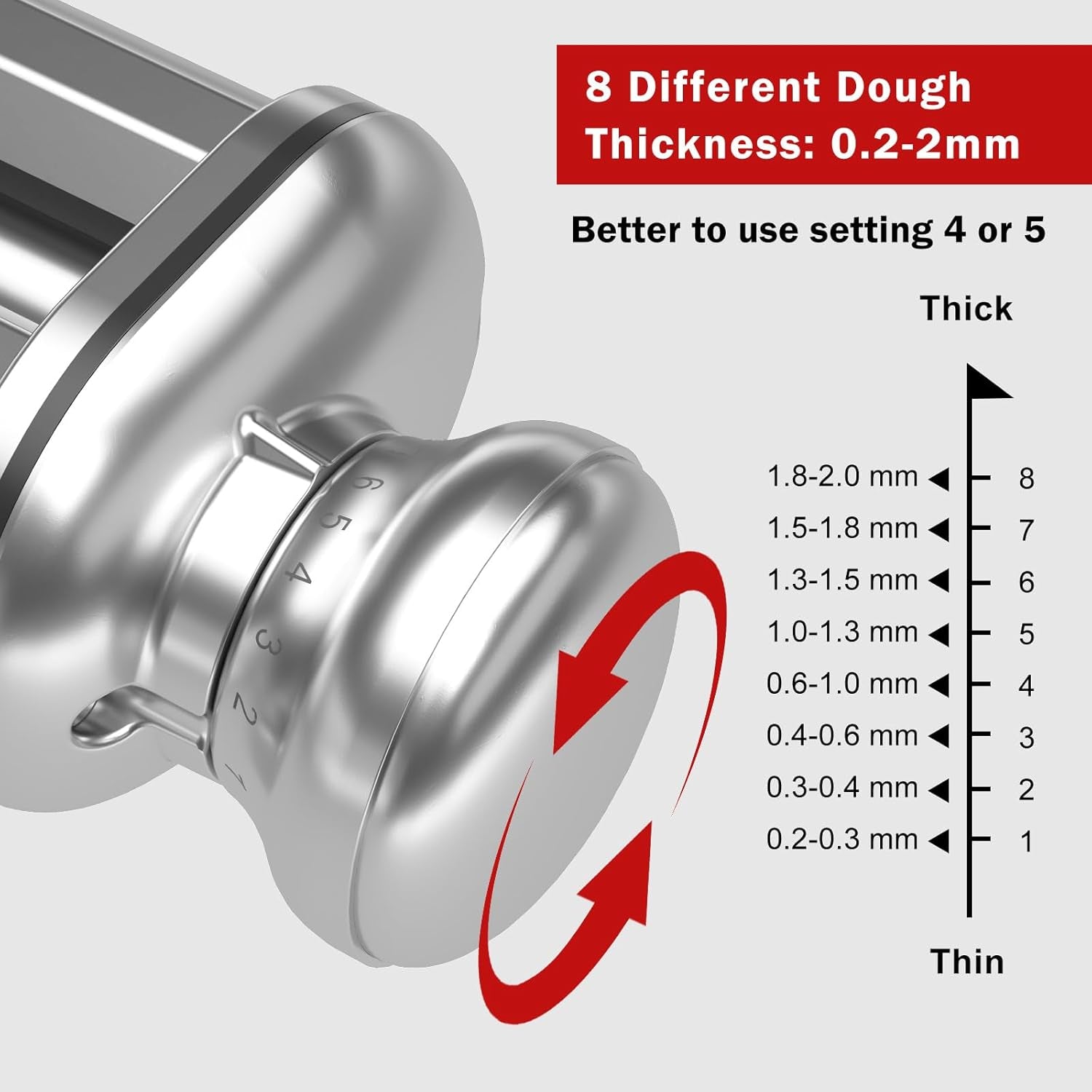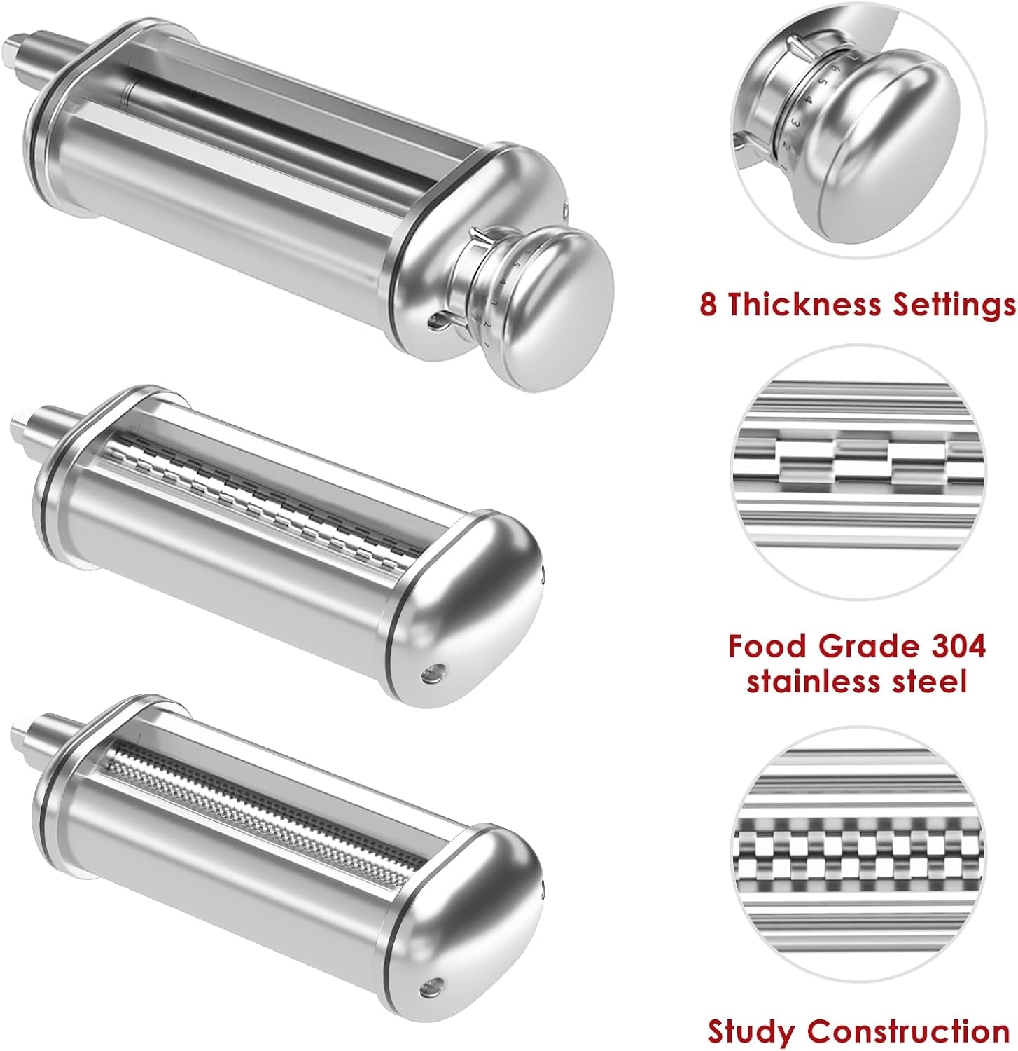Pasta Maker Attachments for Kitchenaid Mixers, 3-Pieces Pasta Accessories Included Stainless Steel Dough Sheet Roller, Fettuccine Cutter, Spaghetti Cutter and Cleaning Brush