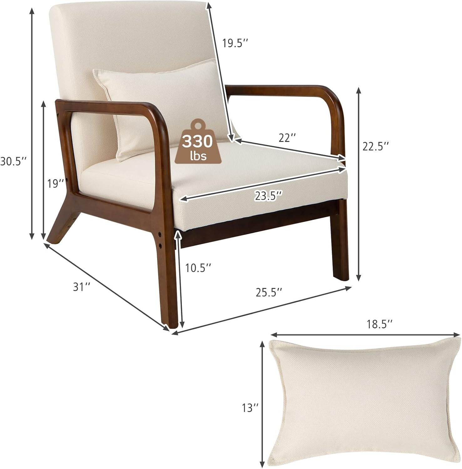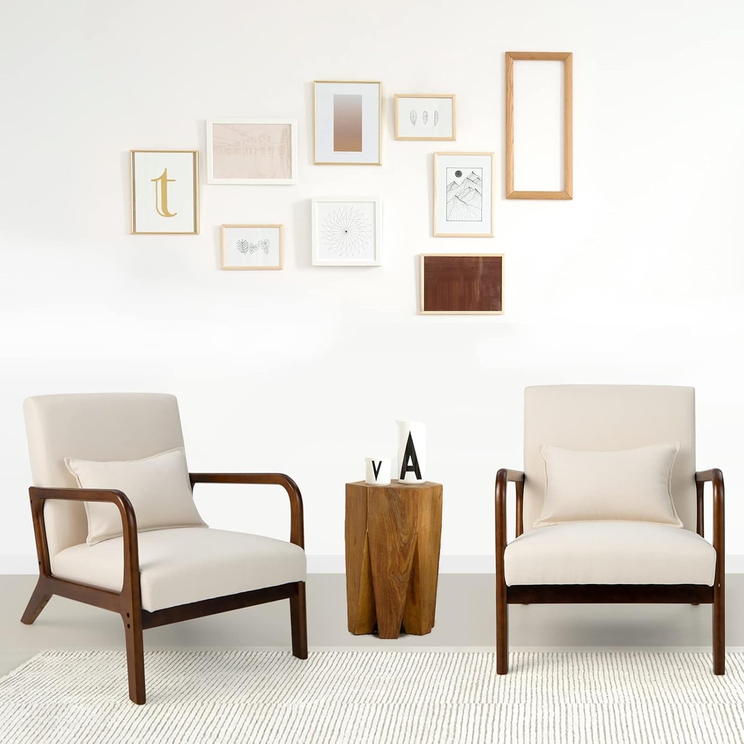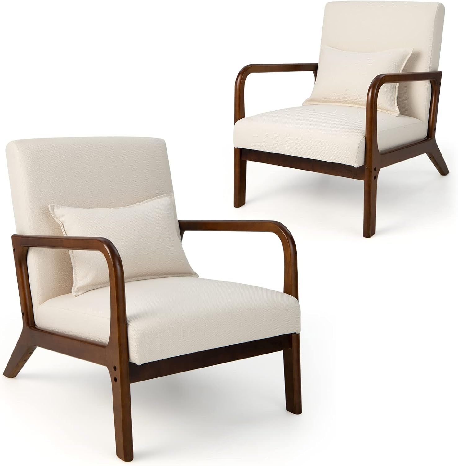 Set of 2 Modern Accent Chair with Pillow - Comfy Upholstered Lounge Armchair with Anti-Slip Felt Pads, Wooden Frame Soft Padded Arm Chairs for Living Room, Bedroom, Study, Beige