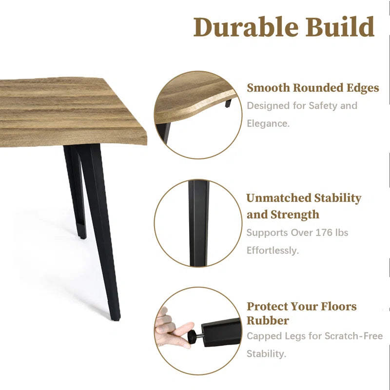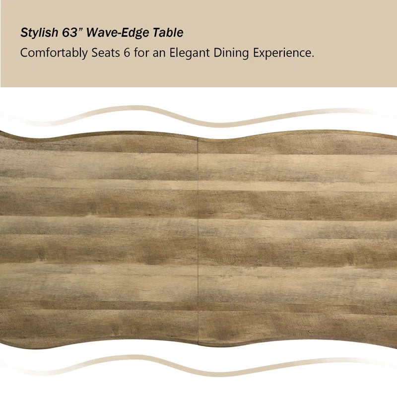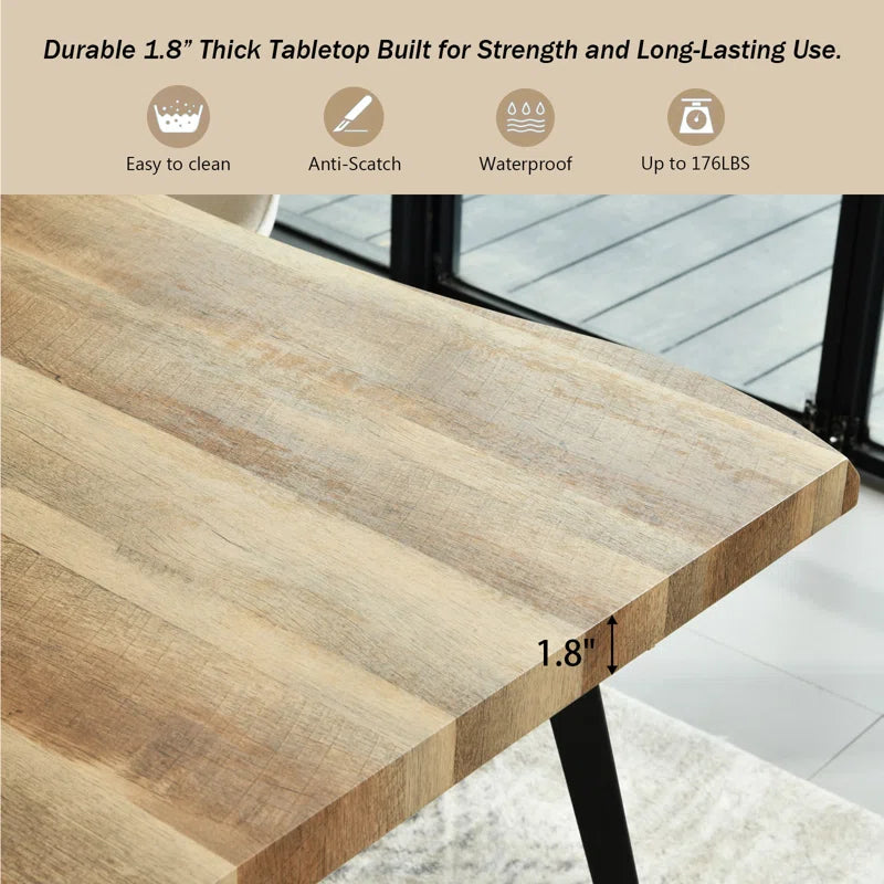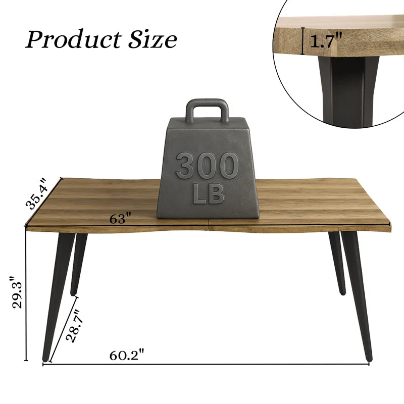 Shivani 63" Rectangle Live Edge Dining Table for 6 with Metal Base for Dining Room, Kitchen, Restaurant