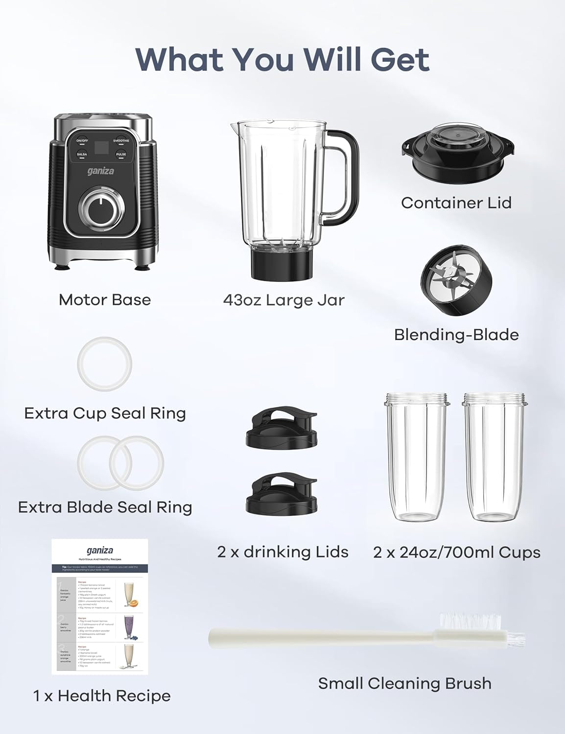 1100W Powerful Smoothie Blender: Ganiza Blender with MAX 1100W upgraded full copper turbocharged motor pulse technology, 25000RPM High Speed, and... Read more