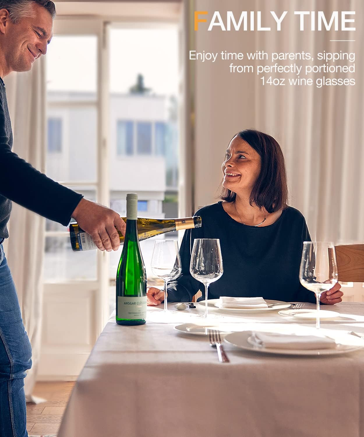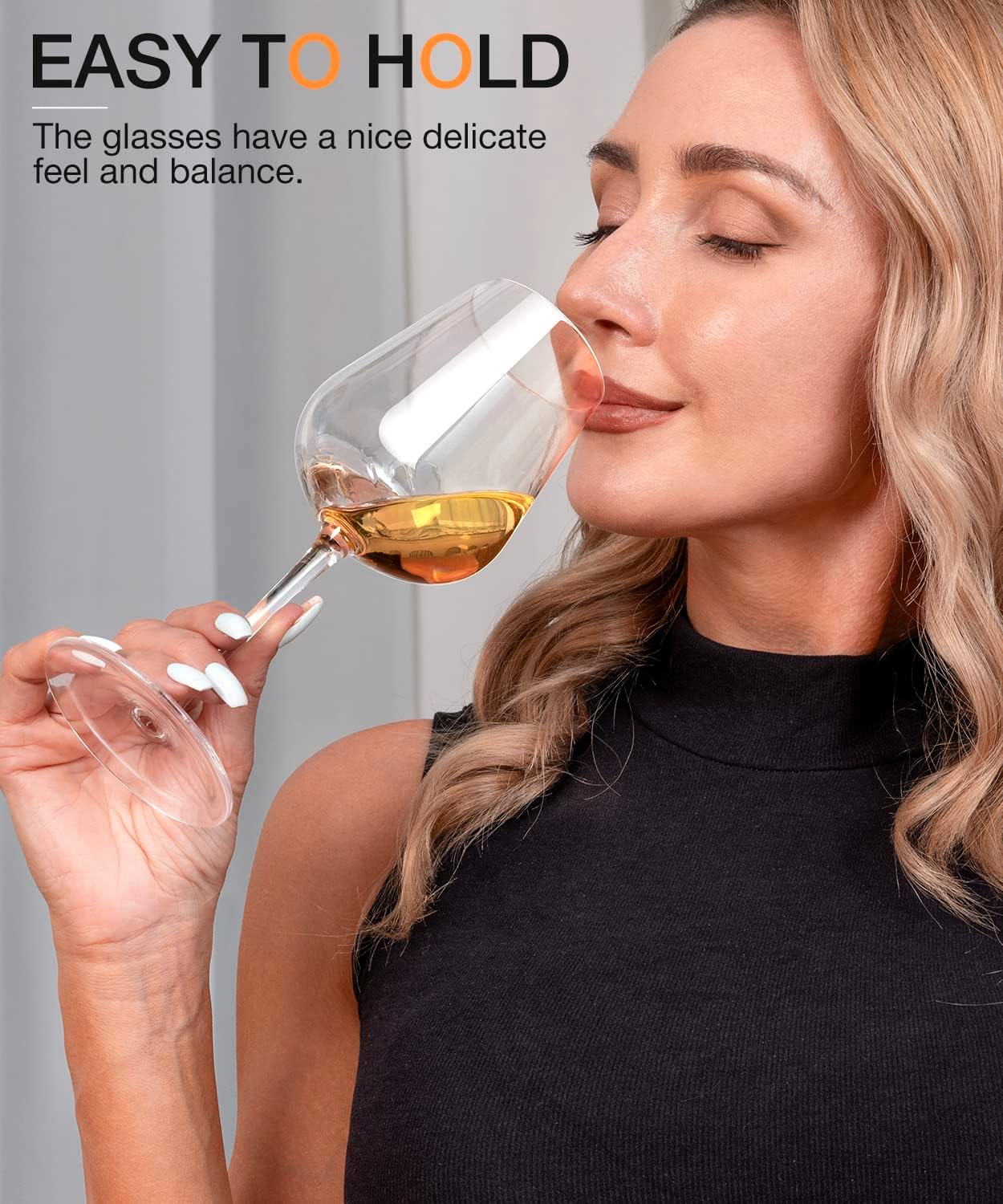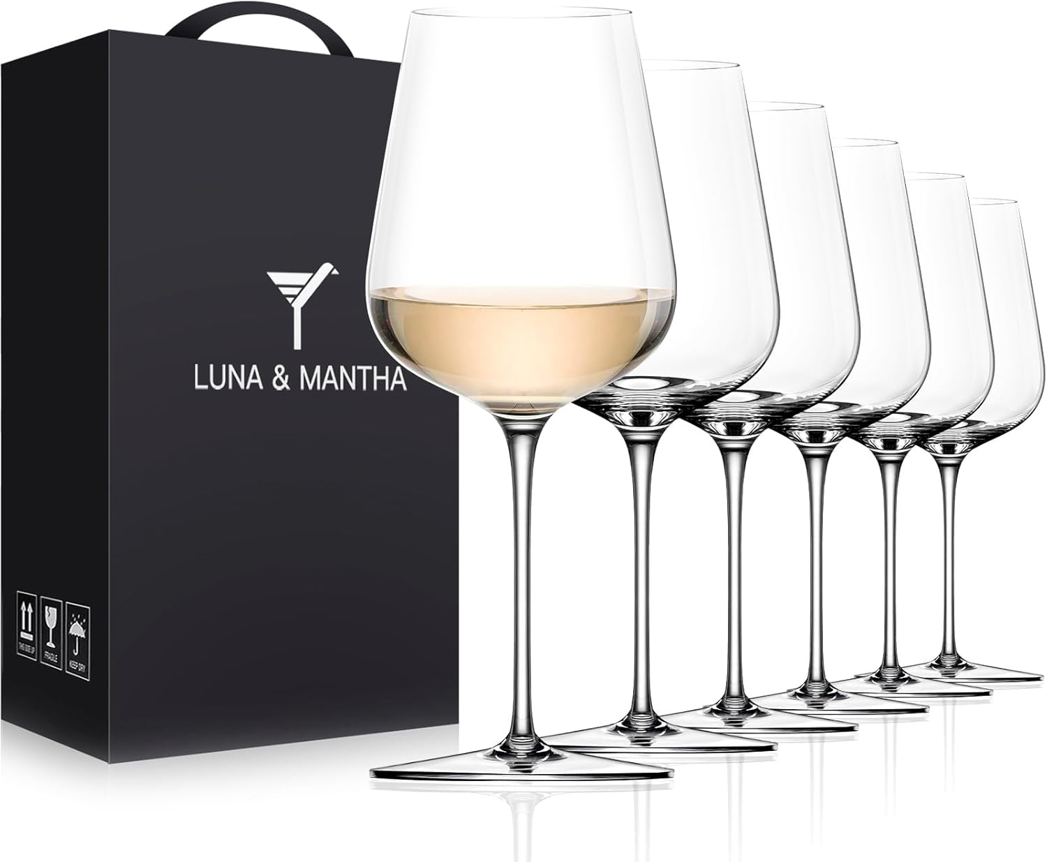 Wine Glasses Set of 6, Crystal White Wine Glasses with Long Stem, Hand Blown 14Oz, Red White Gift Packaging for Daily Use, Wedding Anniversary or Birthday
